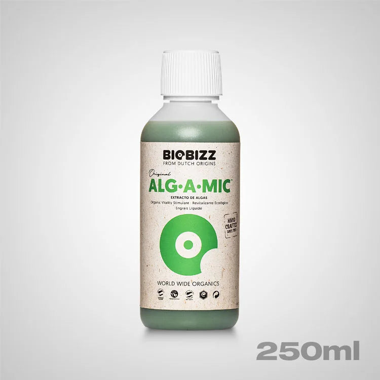 Schon seit 3000 v. Chr. werden Algen als Nahrung, Medizin und Dünger genutzt. Alg·A·Mic wird aus einem hochwertigen, 100% organischen Algenkonzentrat gewonnen, das durch Kaltpressung extrahiert wird – ganz ohne chemische Lösungsmittel. Diese natürliche Nährstoffquelle deckt den gesamten Bedarf deiner Pflanzen ab und sorgt für üppiges, grünes Wachstum.