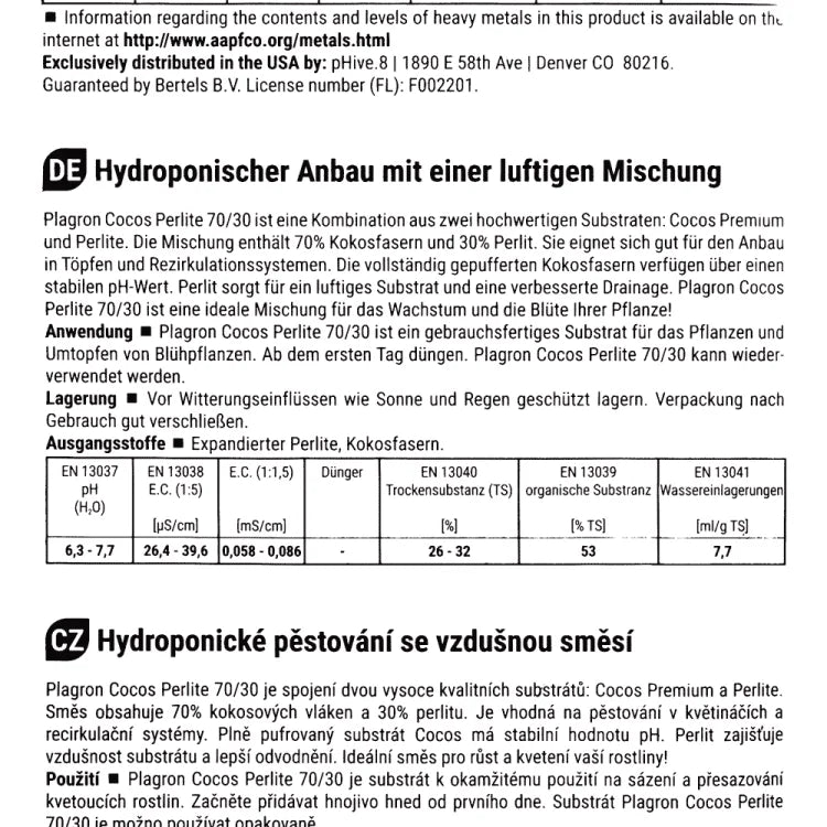 Die Kokosfasern werden bei der Herstellung von Cocos Perlite ausgiebig gespült und vollständig gepuffert, dadurch hat dieses hochwertige Substrat einen stabilen pH-Wert von 6,3 - 7,7. Da Plagron Cocos Perlite nicht vorgedüngt ist, hast Du die komplette Kontrolle über die Nährstoffgabe und kannst bei Deinem Grow Dein individuelles Düngeschema anwenden.